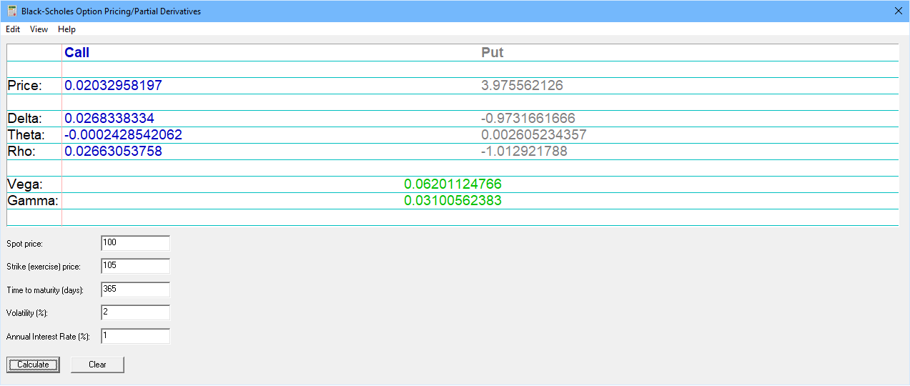 This Black-Scholes Option Pricing Calculator determines the fair market price of European put and call options. It assumes the underlying asset pays no dividends before maturity. We assume no responsibility for the correctness of this software